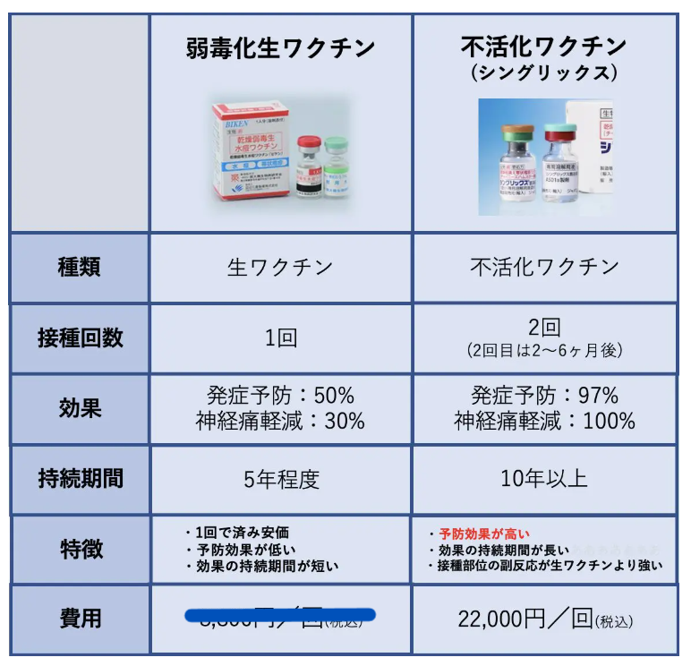 使用するのは、不活化ワクチン:シングリックスのみです